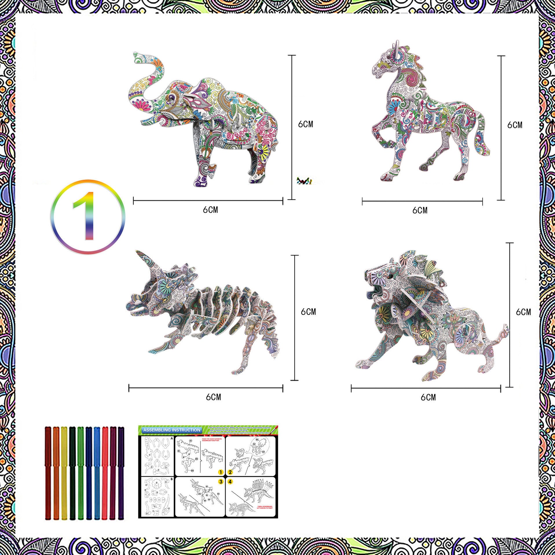 1 Style: 4 types of 3D puzzles (lion, dinosaur, horse, elephant)